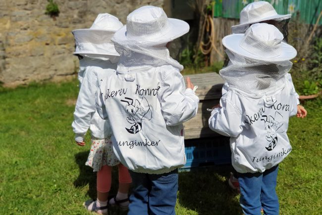 Je nach Wunsch und vorheriger Absprache geben wir gerne auch Kurse für JungimkerInnen, die sich über das Jahr verteilt in die jahrestypischen Arbeiten eines Imkers einarbeiten möchten. Gerne unterstützen wir euch bei eurem Wunsch nach Bienen und dem Zugang zur Natur.